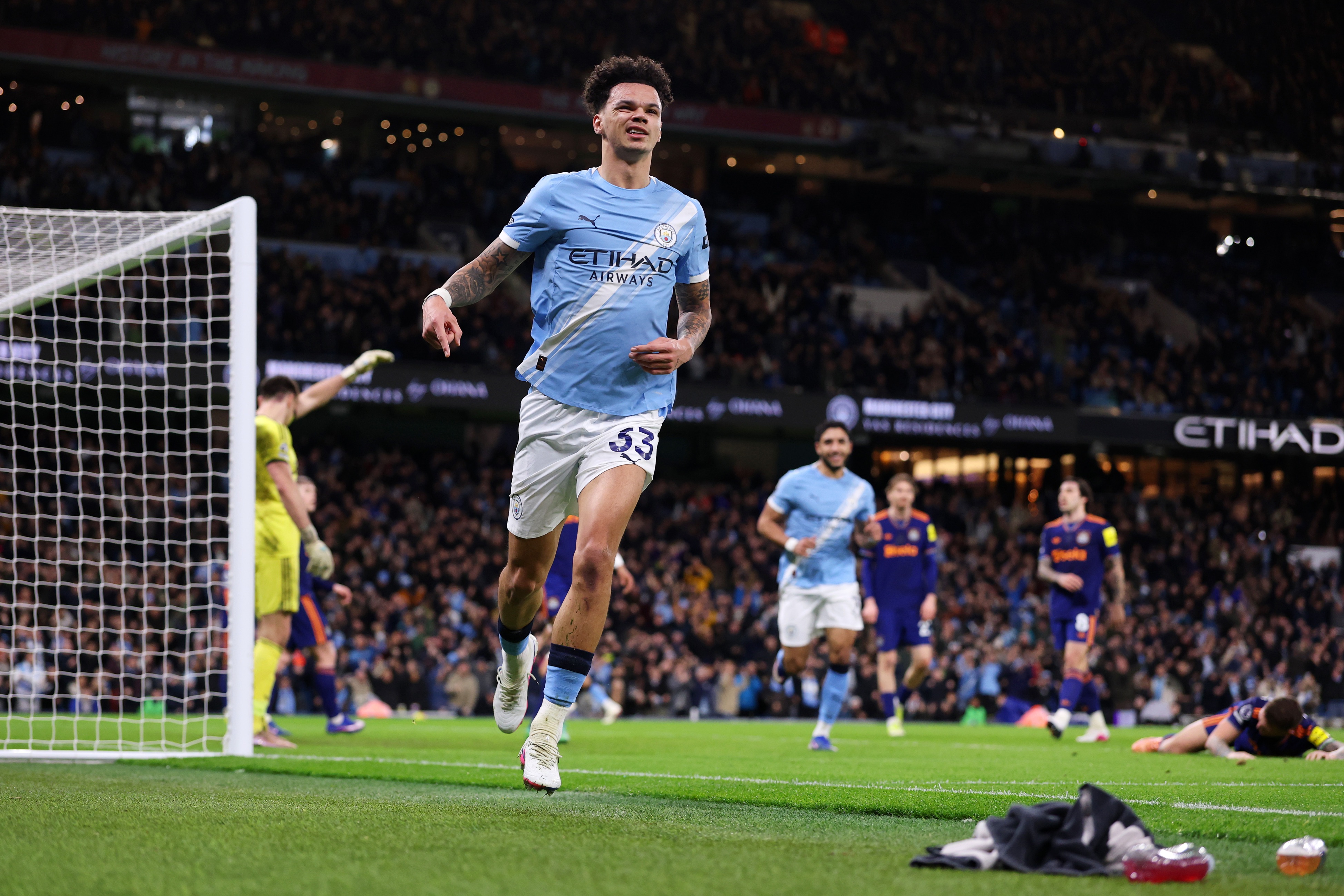 A brilliamt ball from Cherki puts through Ait-Nouri, ans City are in two against one, with Haaland at the back post.